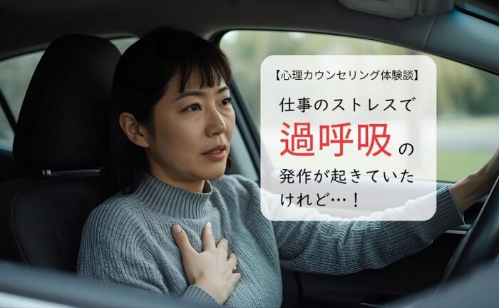 パニック障害による過呼吸に悩まれていたクライアント様の心理カウンセリング体験談を紹介します。とくに仕事中の車の運転時に過呼吸の発作がでて悩まれていました。5回のカウンセリングで過呼吸の発作はほぼ解消されました。掲載の許可をいただいています。
